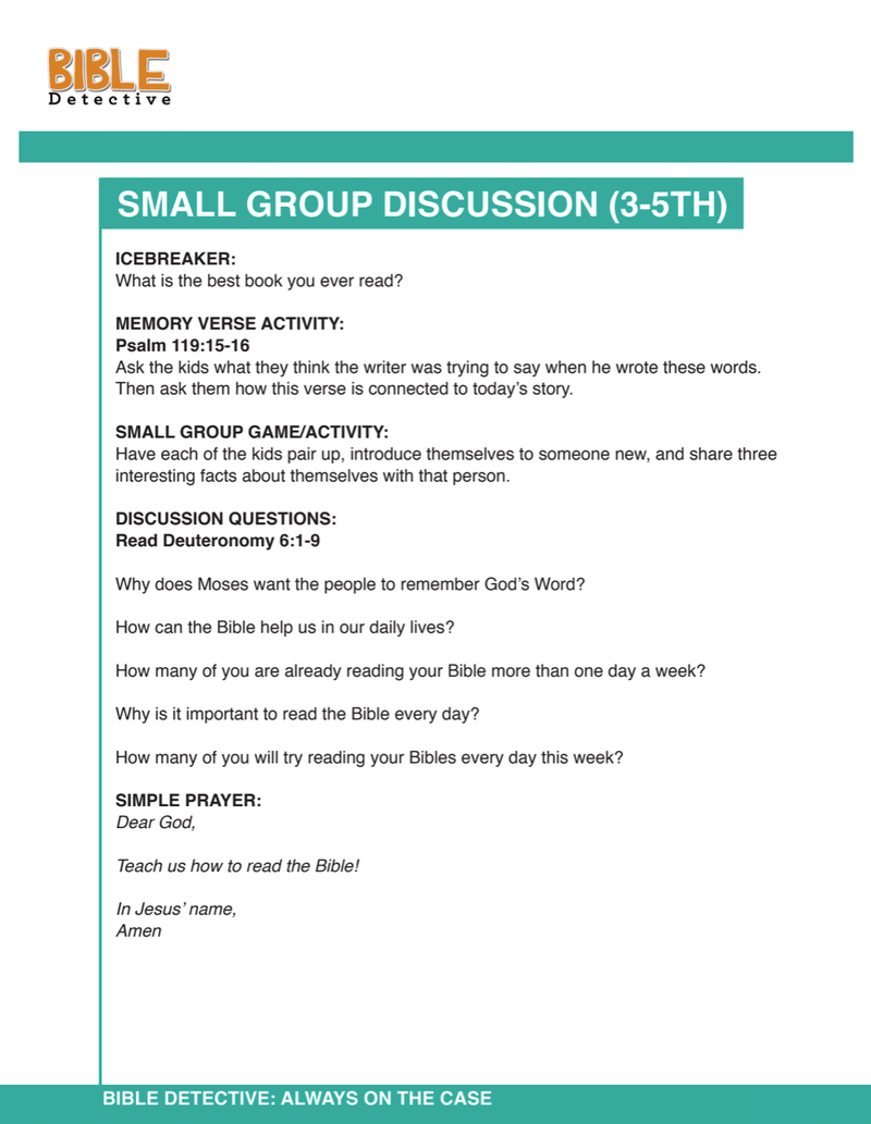 Small-Group Discussion - so you can find out who was paying attention and who was talking to their neighbor. Just kidding, this is a great way for you to build deeper relationships with your kiddos after each lesson, which means you're going to care about them so much you'll cry like a baby when they graduate and go to middle school :(