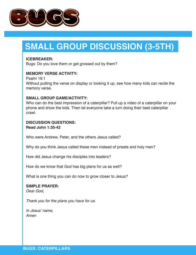 Small-Group Discussion - so you can find out who was paying attention and who was talking to their neighbor. Just kidding, this is a great way for you to build deeper relationships with your kiddos after each lesson, which means you're going to care about them so much you'll cry like a baby when they graduate and go to middle school :(